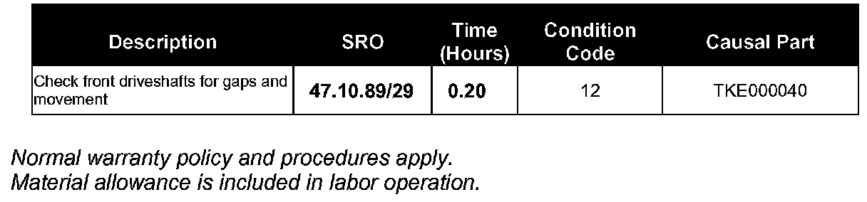 ^ Claim driveshaft remove and replace as a separate warranty repair.