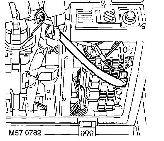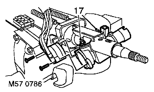 12. Remove 4 nuts securing steering column assembly to fascia rail and remove steering column assembly.