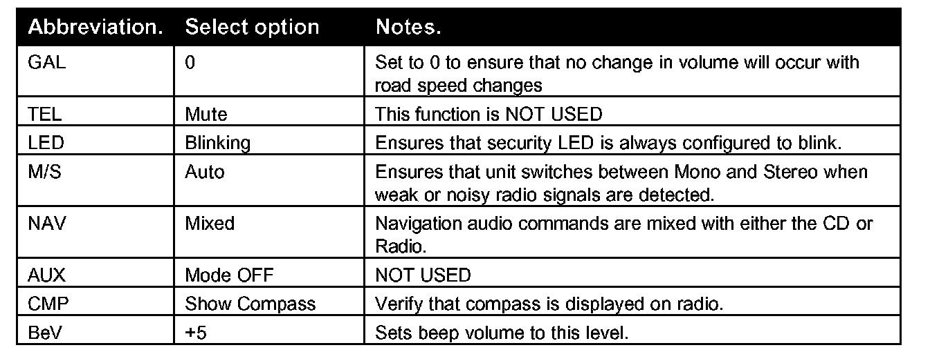 For NAV unit replacement or when battery power has been interrupted, it will be necessary to calibrate or enter certain configuration features into the Becker Navigational system to ensure proper operation.