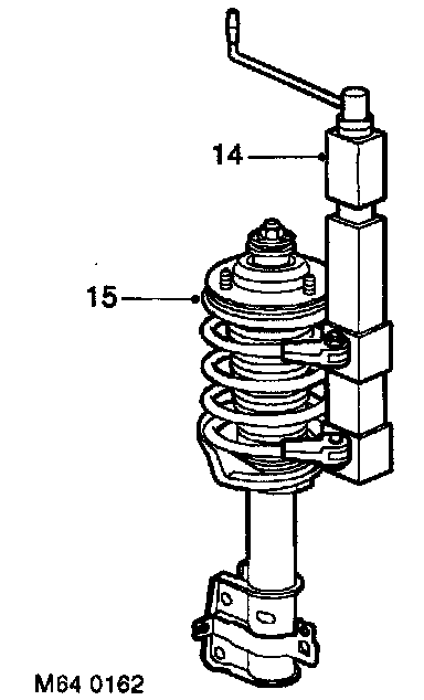 15. Position spring and damper assembly to spring compressor. Compress spring.