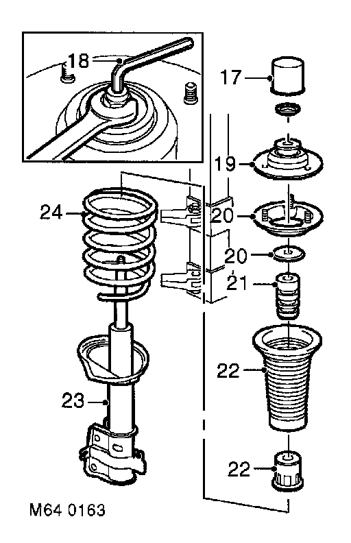 16. Reference mark between top mounting and spring.