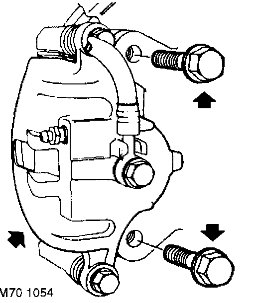 CAUTION: Do not allow caliper to hang on brake hose.