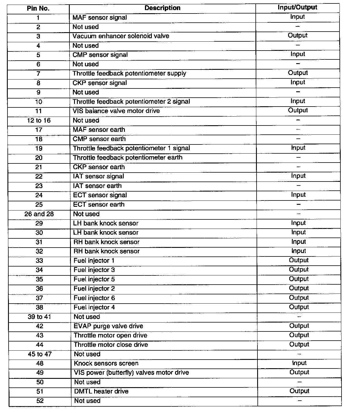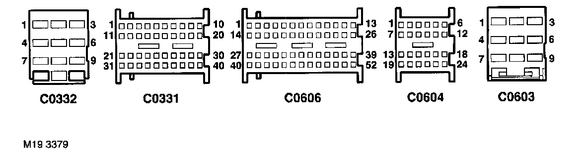 The ECM is located in the engine compartment, in the E-box. Five connectors provide the interface between the ECM and the vehicle wiring.