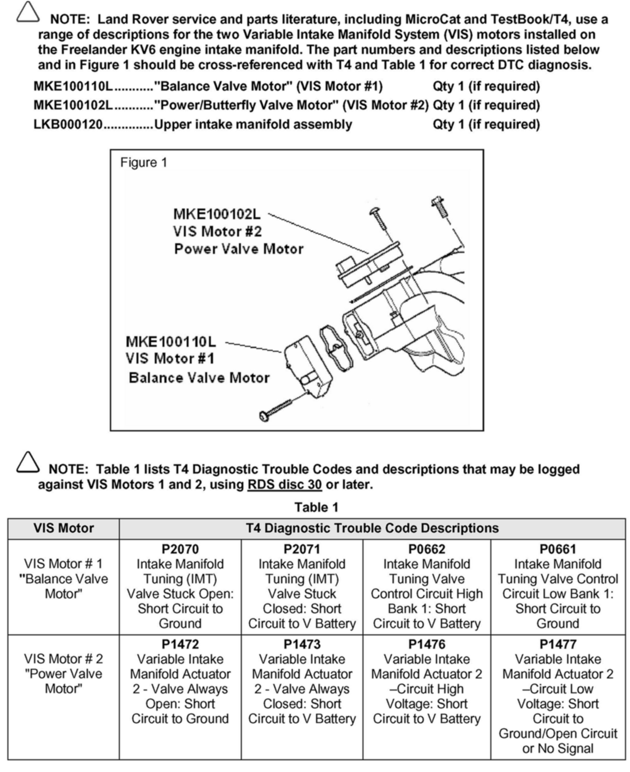 This 'information only' bulletin has been issued to aid diagnosis and resolution of Diagnostic Trouble Codes (DTCs) related to valve actuator motors assembled to the air intake manifold of the KV6 engine. A noticeable change in engine performance or a 'rattle' noise coming from the intake manifold area during idle may be reported.