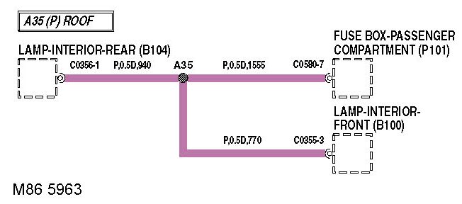The length of the wire is shown in millimeters. This can be used to locate internal harness splices; look for the shortest wire between the joint and connector. For example, it can be seen that C0580-7 is 1555 mm from joint A35.