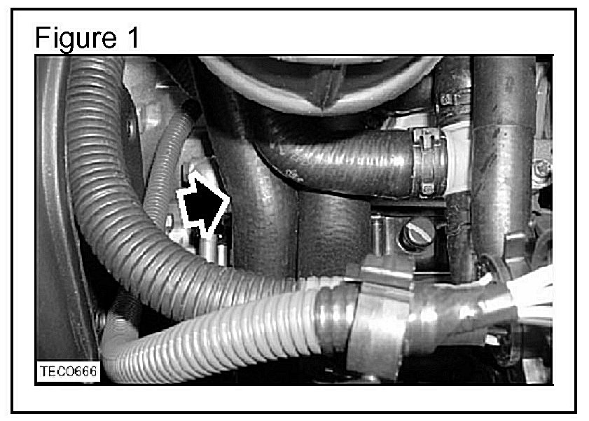 9. Monitor the bottom radiator hose using a non-contact thermometer (Raytek MiniTemp or similar) to determine that the hose becomes hot and the thermostat has opened. (Figure 1)