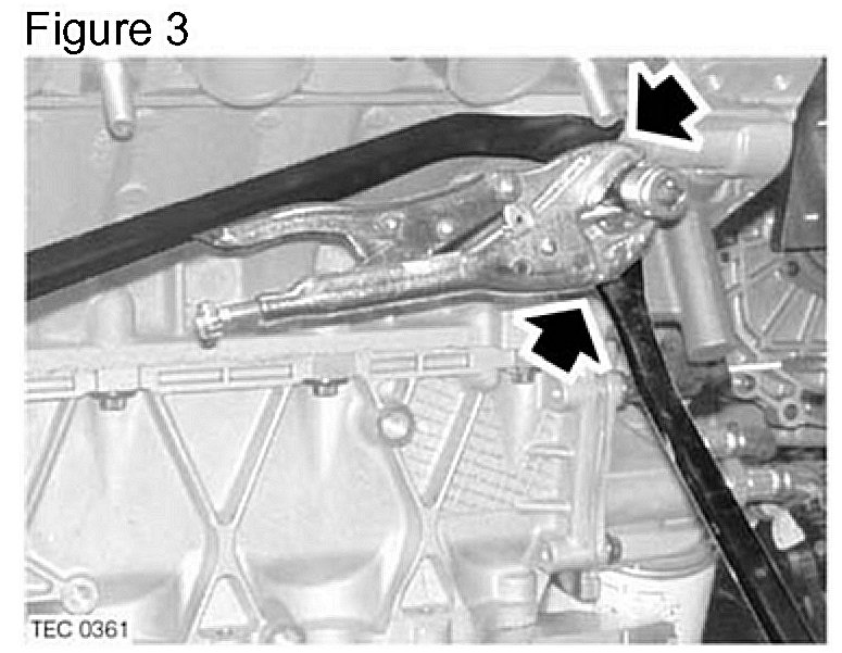 ^ Using a pair of pry bars carefully remove the stub pipe from cylinder block (Figure 3).