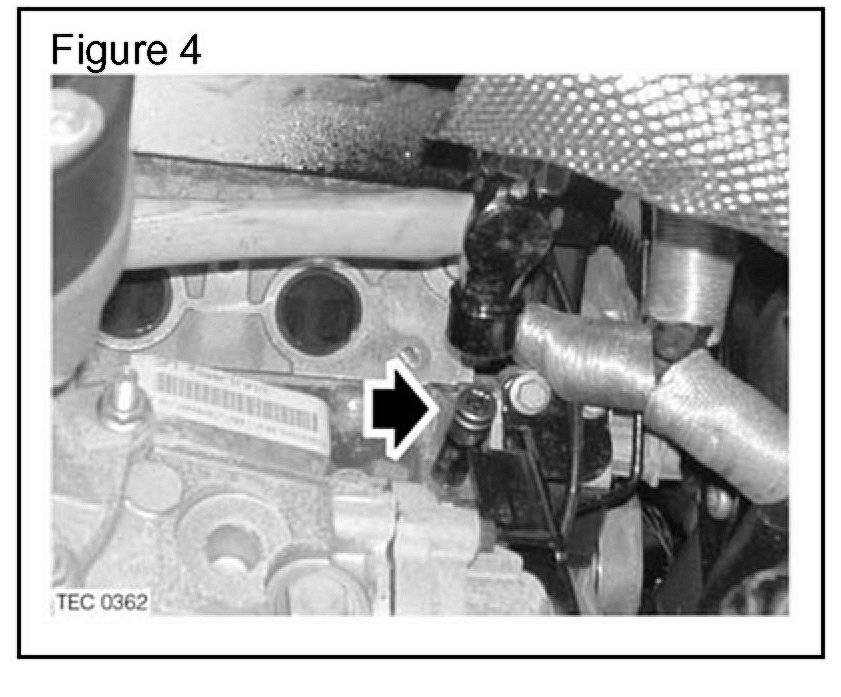 12. Visually inspect the heater stub pipe located in the rear of the cylinder block for leaks and ensure the stub pipe is secure.