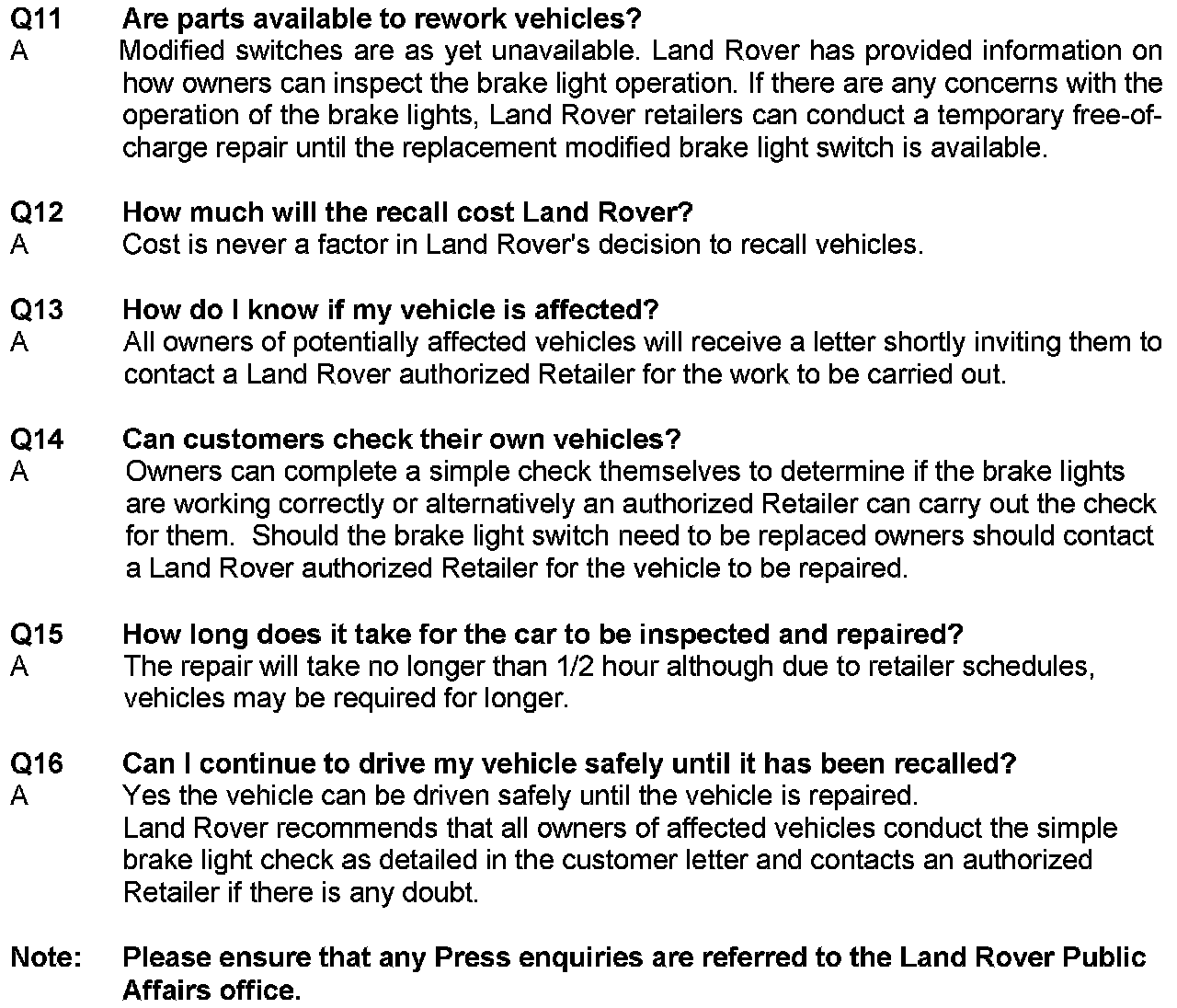 Recall P002 - Brake Light Switch Replacement