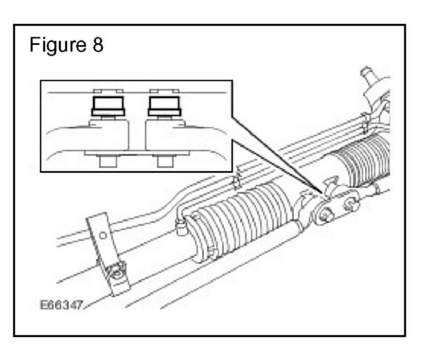 14. Tighten power steering rack clamp bolts to 45 Nm (33 lbf.ft).