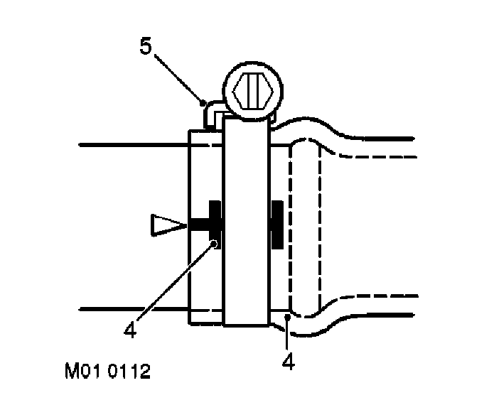 Markings (4) are usually provided on the hose to indicate the correct clip position. If no markings are provided, position the clip directly behind the retaining lip at the end of the stub as shown. Worm drive clips should be oriented with the crimped side of the drive housing (5) facing towards the end of the hose, or the hose may become pinched between the clip and the stub pipe retaining lip. Worm drive clips should be tightened to 3 Nm (2 lbf.ft) unless otherwise stated. Ensure that hose clips do not foul adjacent components.
