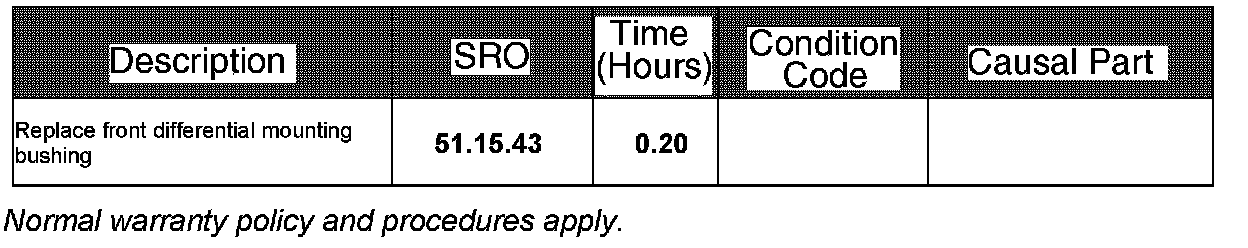 Old Labor Time for replacing the front differential mounting bushing was Operation 51.15.43 and took 0.40 hours.