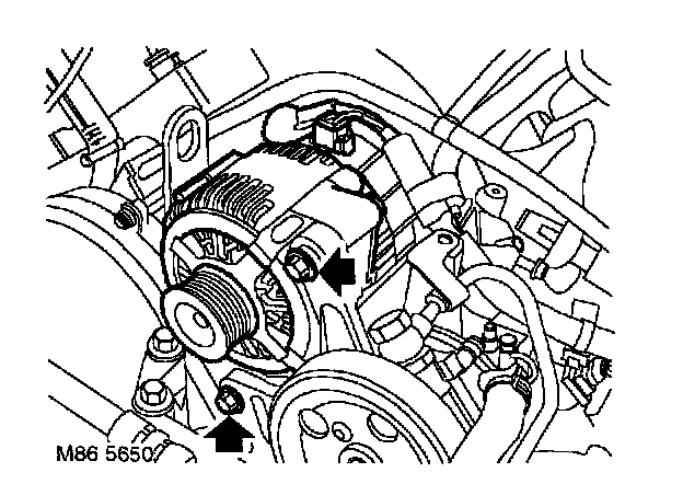 5. Remove nuts and bolts securing alternator.