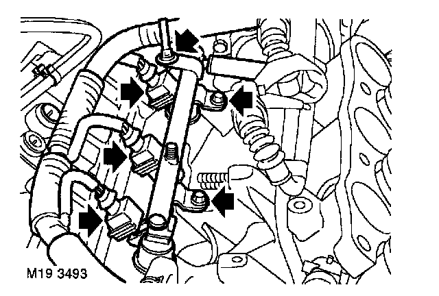 6. Fit and tighten 4 bolts securing fuel rail to inlet manifold to 9 Nm (7 ft. lbs.).