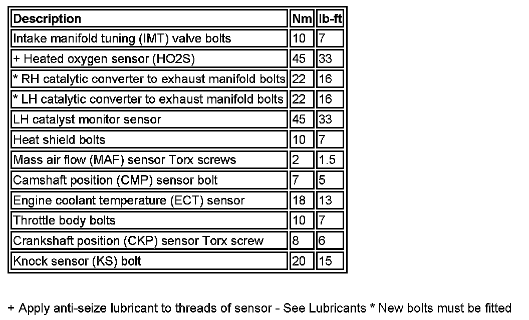 Torque Specifications: