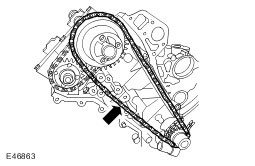 25. Depress the LH secondary timing chain tensioner piston