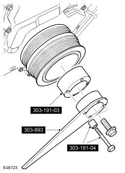 50. Using the special tools, retain the crankshaft pulley