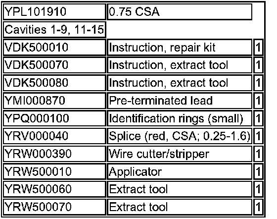 NOTE: Before commencing a repair, refer to the appropriate 'Service Repair Kit' table (see example in Table 1 below) for details of the correct tools and replacement components. The 'Service Repair Kit' table (where appropriate) can be found beneath the 'Connector Details' in the Connector Views.