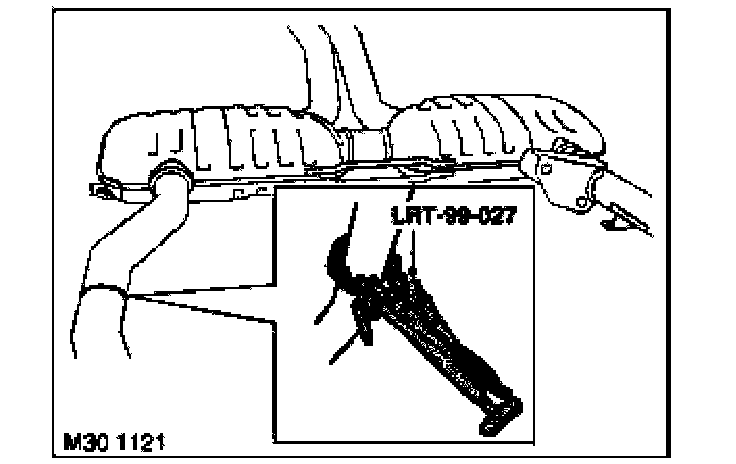 5. Using LRT-99-027, cut pipe at point indicated by depression in pipe and remove front pipe section.