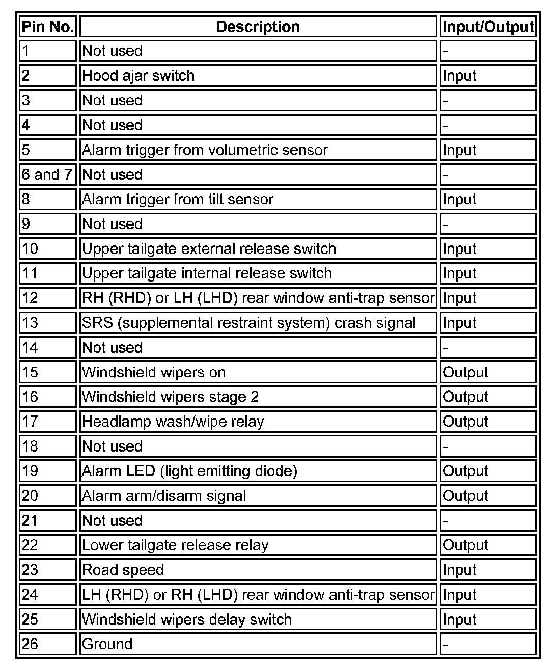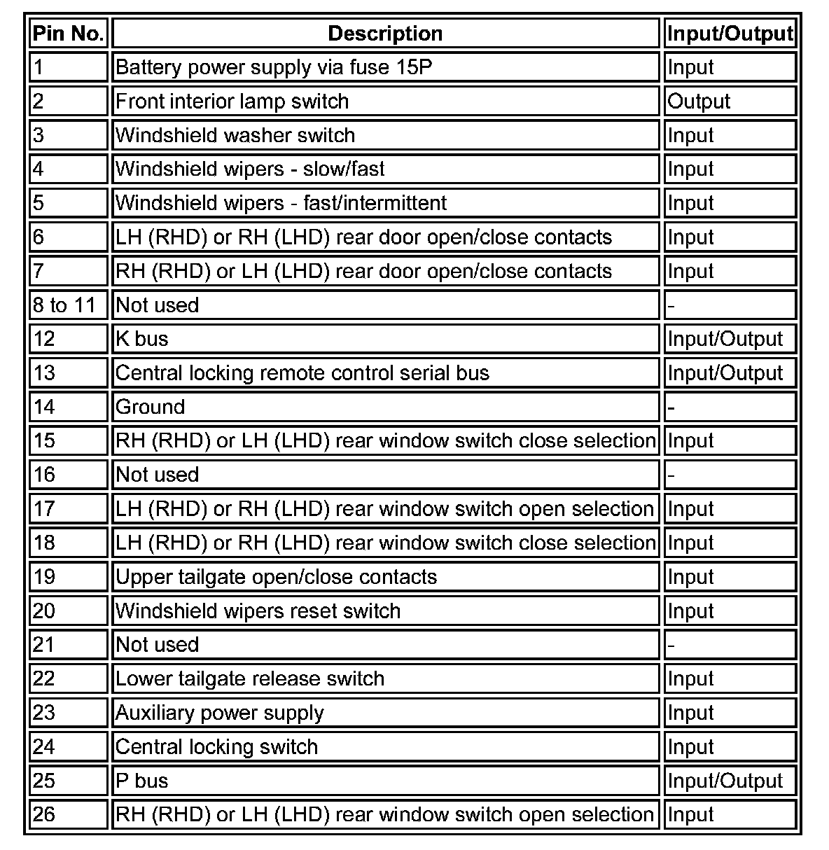 ^ Any door status switch (driver, front passenger, LH (left-hand) and RH (right-hand) rear doors)