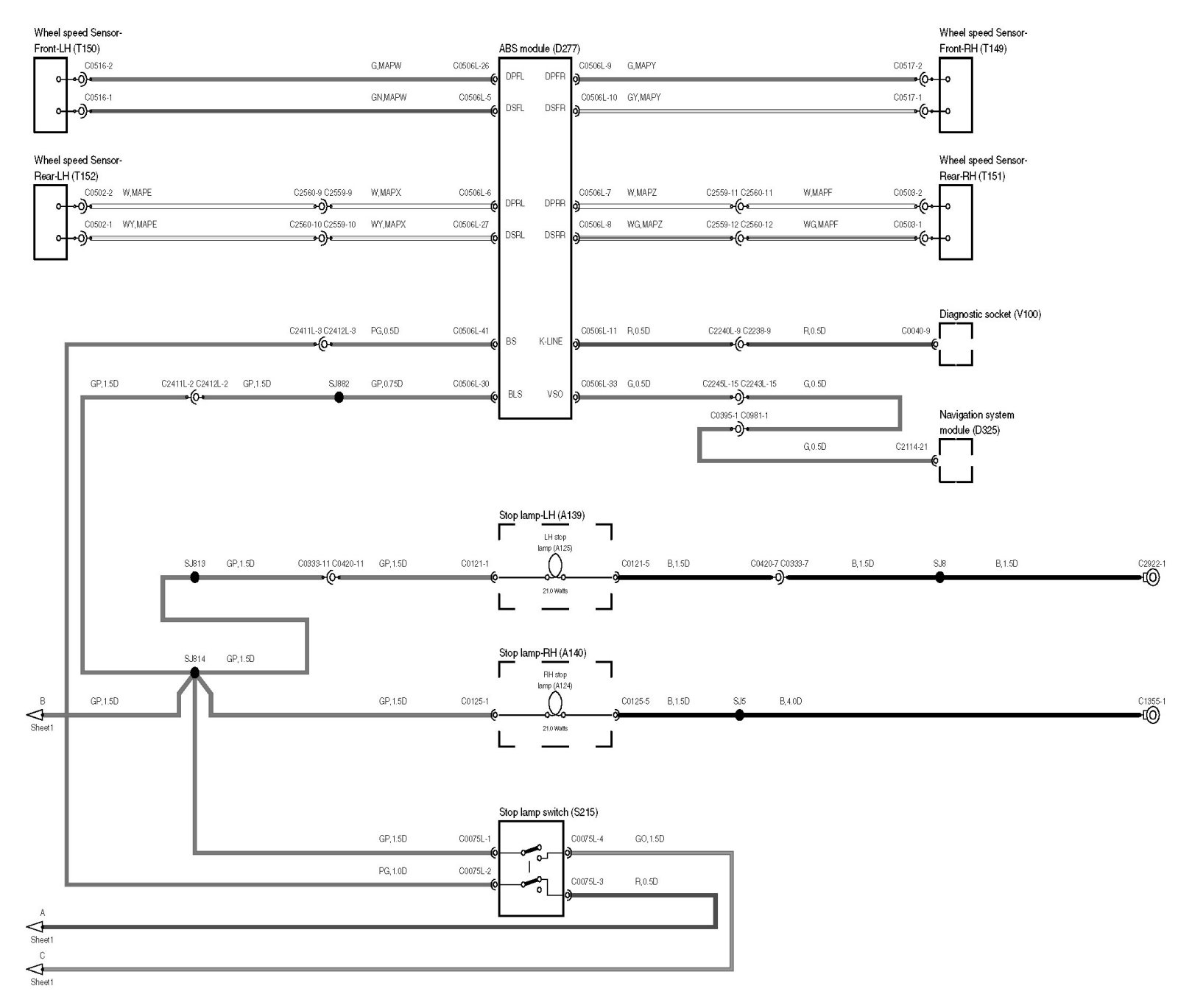 Locations: The location views for connectors and components depicted within these diagrams can be found via the connector's base number (i.e. C0570) at Vehicle/Locations/Connectors. Locations