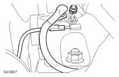 ^ Connect the engine ground cable and tighten the bolt to 25 Nm (18 ft. lbs.).
