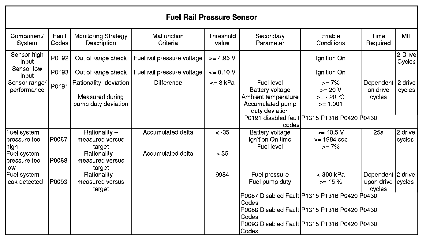 If the above table does not include details of the following enabling conditions: - IAT, ECT, vehicle speed range, and time after engine start-up then the state of these parameters has no influence upon the execution of the monitor.