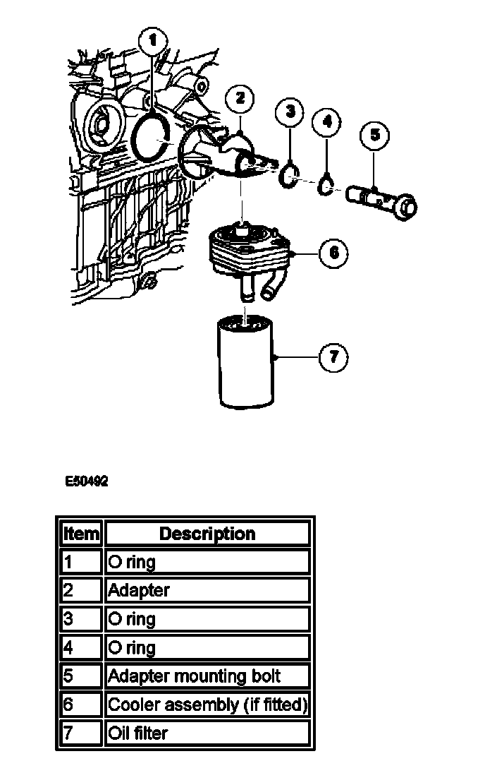 The filter adapter-mounting bolt locates in the cylinder block oil gallery and is sealed by an O-ring. The filter adapter houses the adapter bolt and is also sealed to the cylinder block by an O-ring.