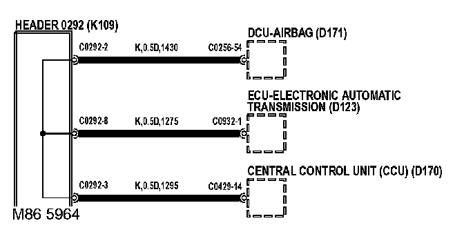 Header joints are identified by their corresponding connector number with a numbered suffix to indicate the pin-out detail of the wire, i.e. C0292-1 identifies connector 292, pin number 1. Wire insulation color is identified in the normal way. Where wires have a predominant color with a secondary color tracer, the main color is identified first, i.e. LGS - Light Green with a Slate tracer.