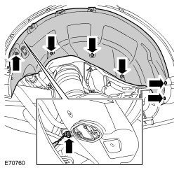 43. LH side front: Remove the engine compartment heat shield.