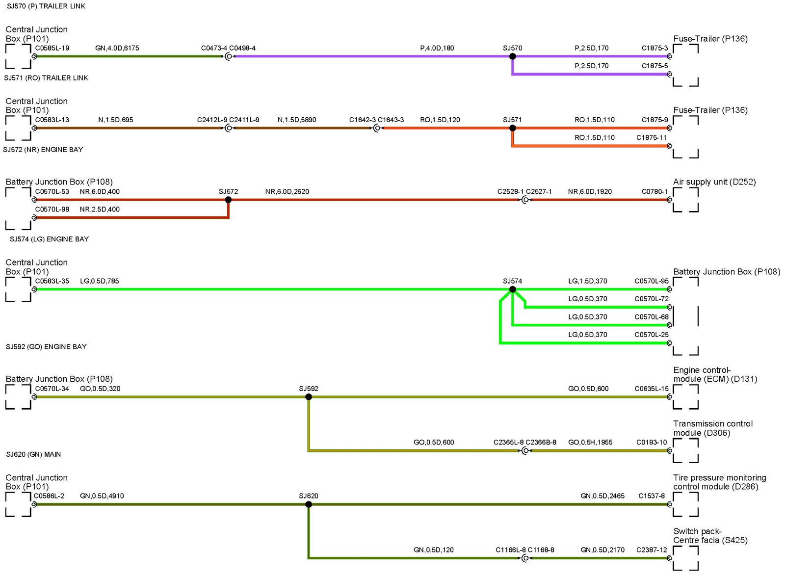 Locations: The location views for connectors and components depicted within these diagrams can be found via the connector's base number (i.e. C0570) at Vehicle/Locations/Connectors. Connector Locations