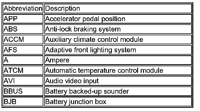 The following list contains wire color codes used on the vehicle harnesses.