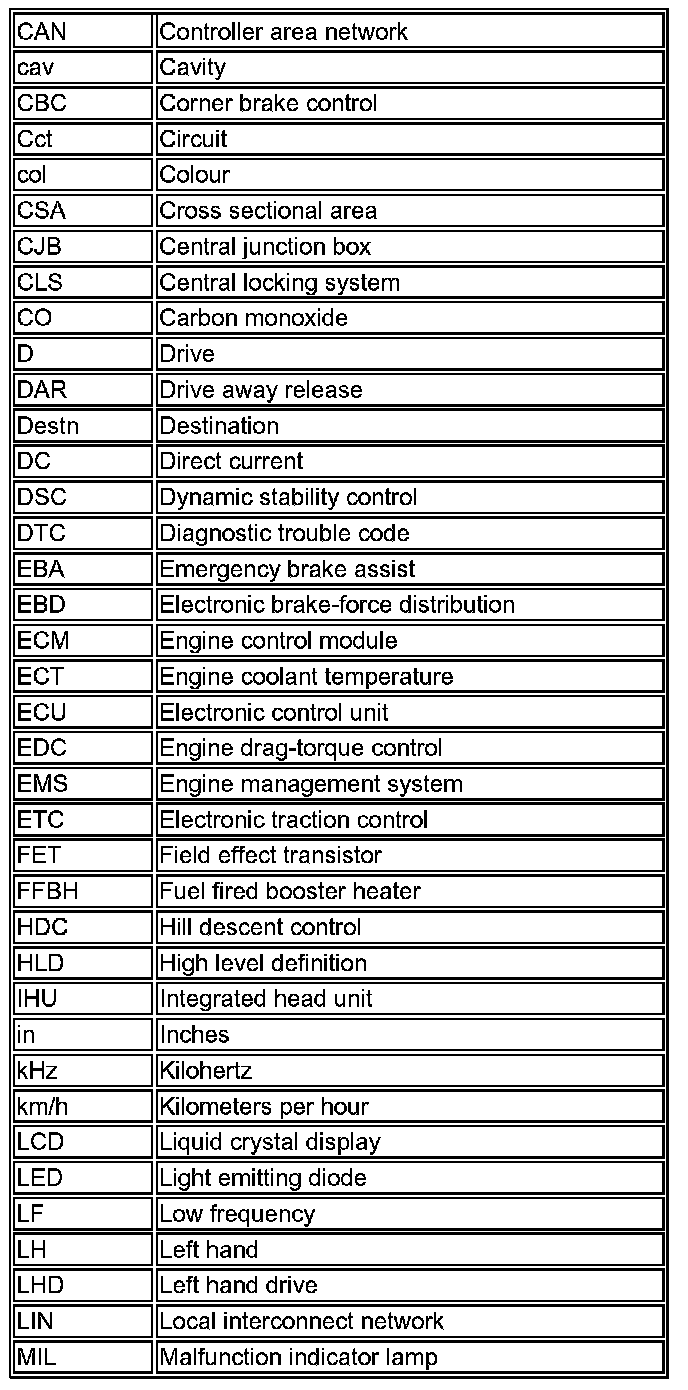 5. Cct: Identifies the model or option which uses the wire. 'ALL' means applicable to all models in the range fitted with the feature or system in question. In instances where different models, features or systems require different color wires to be fitted in a cavity, each instance of the cavity is included in the pin-out table.