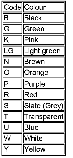 Wire Colour Codes: