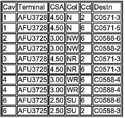 1. Cav: The connector pin (cavity) number.