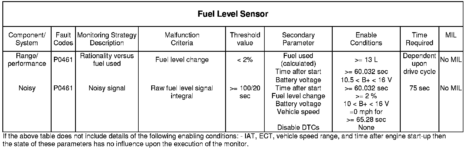 If the fuel used threshold is reached before the fuel level changes by the required percentage, a temporary fault will be stored. A second occurrence will cause the MIL to illuminate.