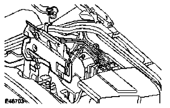 ^ Release the battery positive cable and grommet.