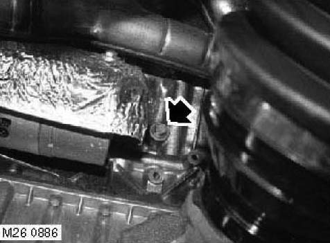 9. Remove cylinder block drain plug and allow coolant to drain. Discard sealing washer.