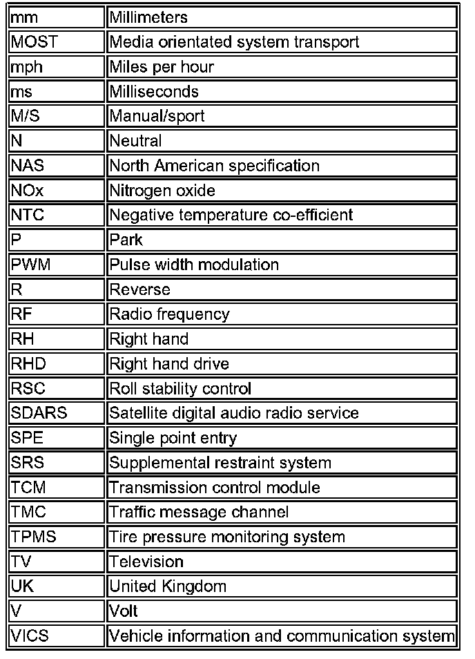 The following list contains wire colour codes used on the vehicle harnesses.