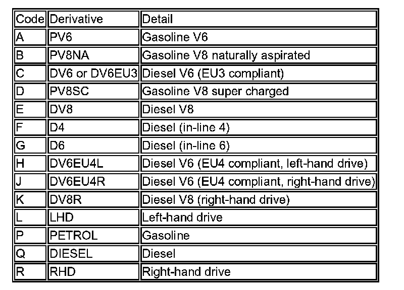 To provide more accurate connector information, in some instances, a suffix has been added to the connector that identifies the vehicle harness derivative; refer to the Connector number suffix table below.
