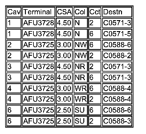 1. Cav: The connector pin (cavity) number.