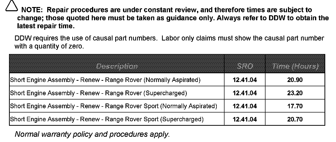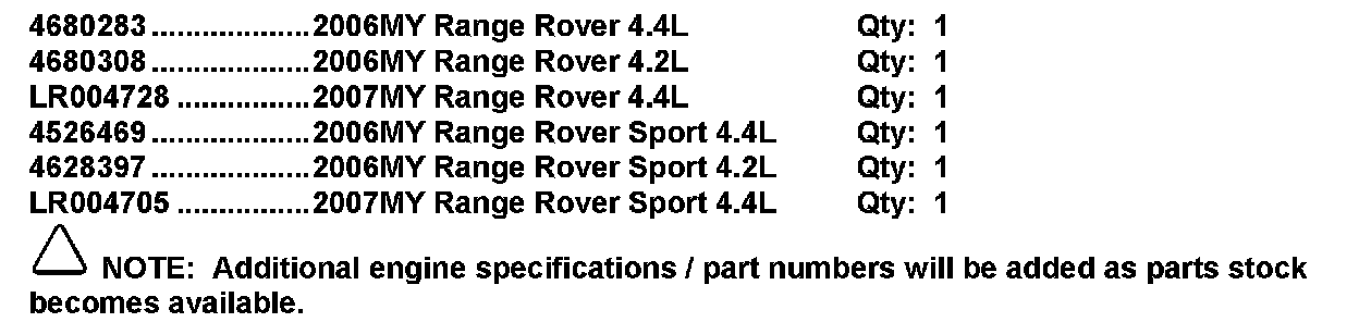 A 4.2L or 4.4L V8 'short' engine is now available as a serviceable part for engine bottom-end repairs previously would have required engine replacement.