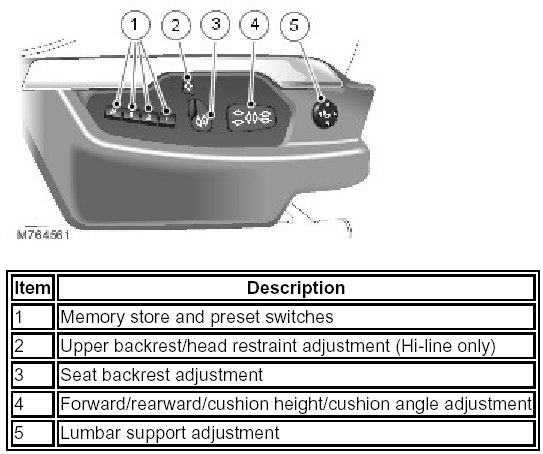 ^ Head restraint height adjustment (electric for hi-line and manual for lo-line)