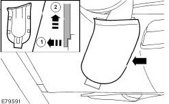 1. Carefully release the clip from behind the front seat base side trim panel.