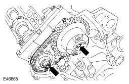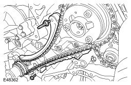4. Install the LH secondary timing chain tensioner and chain to the camshaft sprockets.