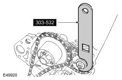 CAUTION: Using the special tool, apply force to the tool in a counter-clockwise direction, to tension the primary timing chain on its drive side.