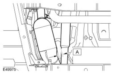 CAUTION: Make sure there is a clearance (A) of 25 mm to 30 mm between the closest points of the LH catalytic converter and the front driveshaft.