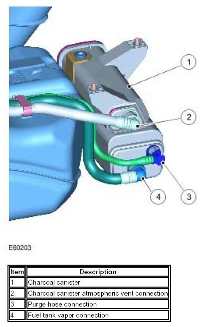 The canister has three ports which allow for the attachment of the atmospheric vent hose, the purge hose and the tank vent hose. On NAS vehicles the atmospheric vent hose connection allows for the attachment of the DMTL pump.