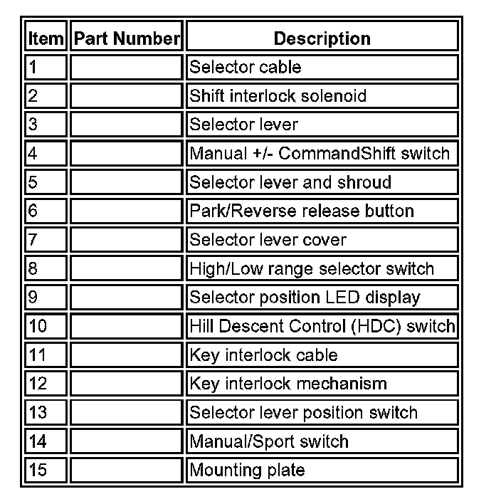 ^ The selector lever position is displayed to the driver on the selector position LED (light emitting diode) display and in the instrument cluster. In 'CommandShift' mode, if a gear is selected, but the TCM (transmission control module) logic prevents selection of that gear, the requested gear is initially displayed. The TCM (transmission control module) will engage the next allowed gear and then display that gear.