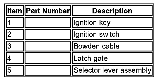 When the footbrake is applied, a signal from a brake switch is passed to the TCM (transmission control module) which de-energizes the solenoid allowing the lever to be moved from the 'P' or 'N' position. This prevents the selector from being moved to the 'D' or 'R' position unintentionally and the application of the brakes also prevents the vehicle 'creeping' when the gear is engaged.